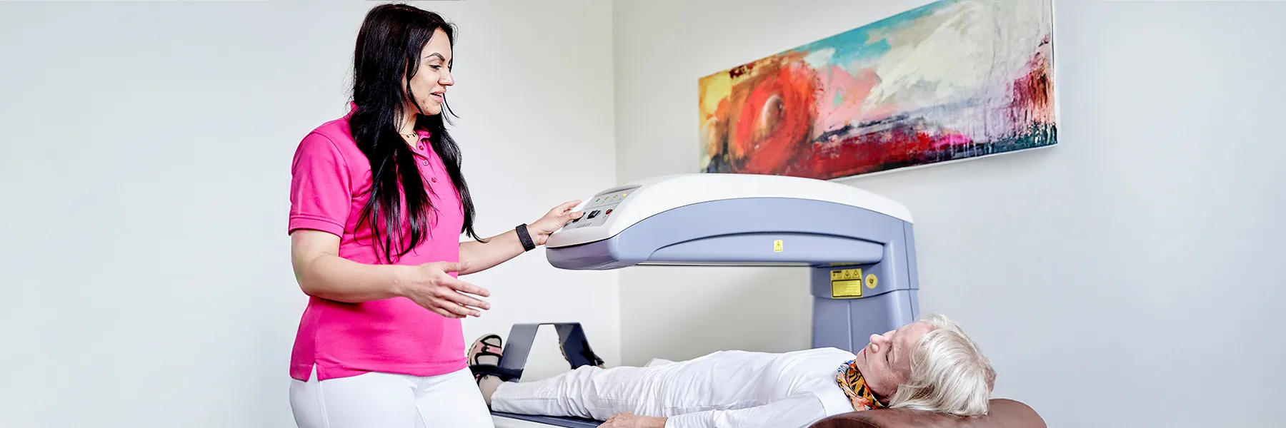 Mit der Knochendichtemessung wird der Kalksalzgehalt des Knochens bestimmt. Dieser ist ein wesentlicher Faktor für die Stabilität der Knochen.
